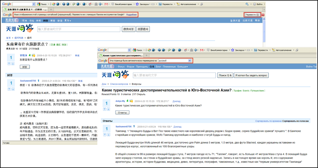 Может, вы планируете провести отпуск в экзотической стране и хотите узнать больше об этом месте? Или просто ищете необходимую информацию на другом языке? Панель инструментов Google поможет с переводом. Когда вы посещаете веб-страницу на другом языке, Панель инструментов "видит" это и предлагает